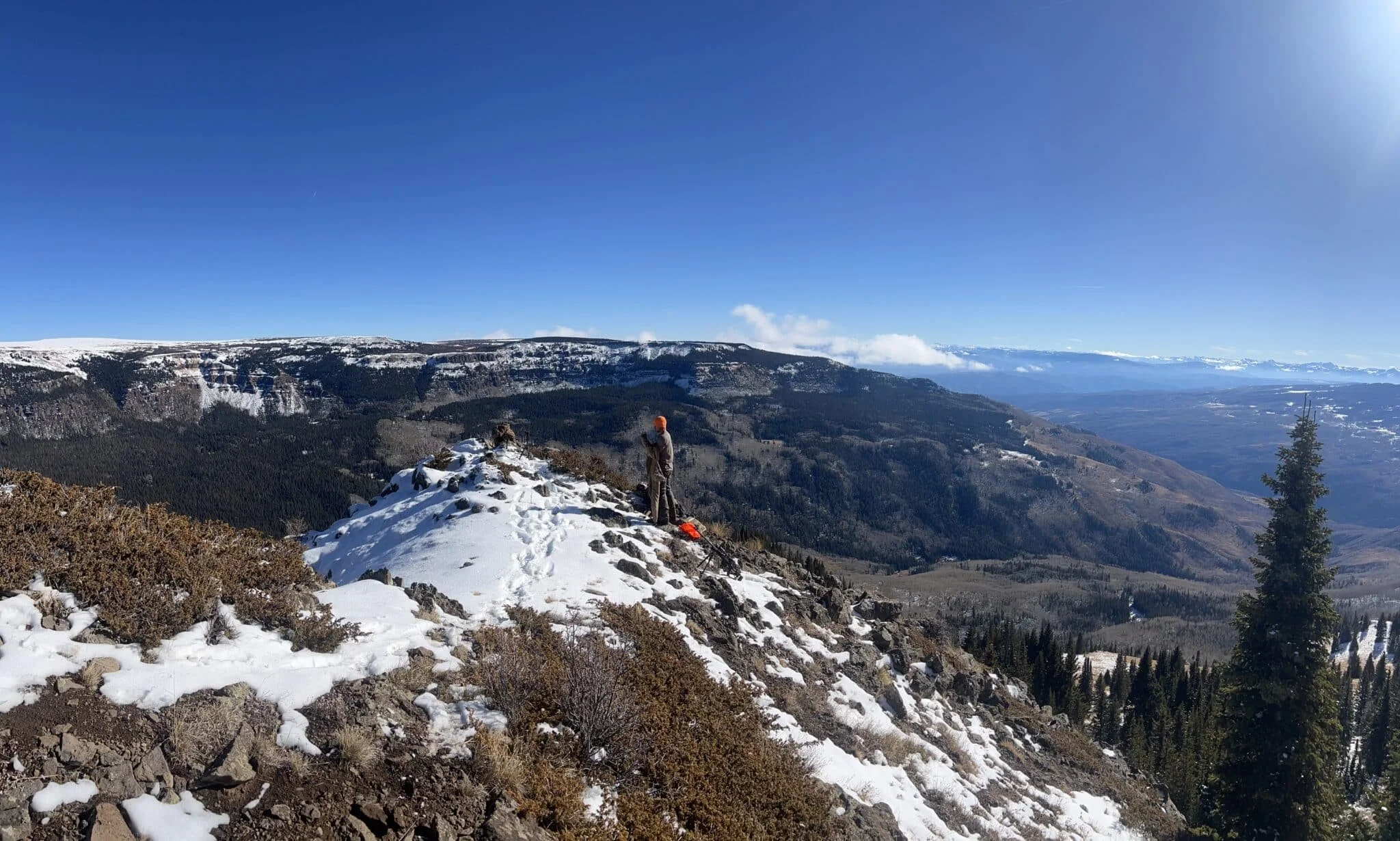 A 4th Rifle Guided hunter perched on top of the world. We hunted all the way up to 11k feet on this late-November hunt. Strange weather!